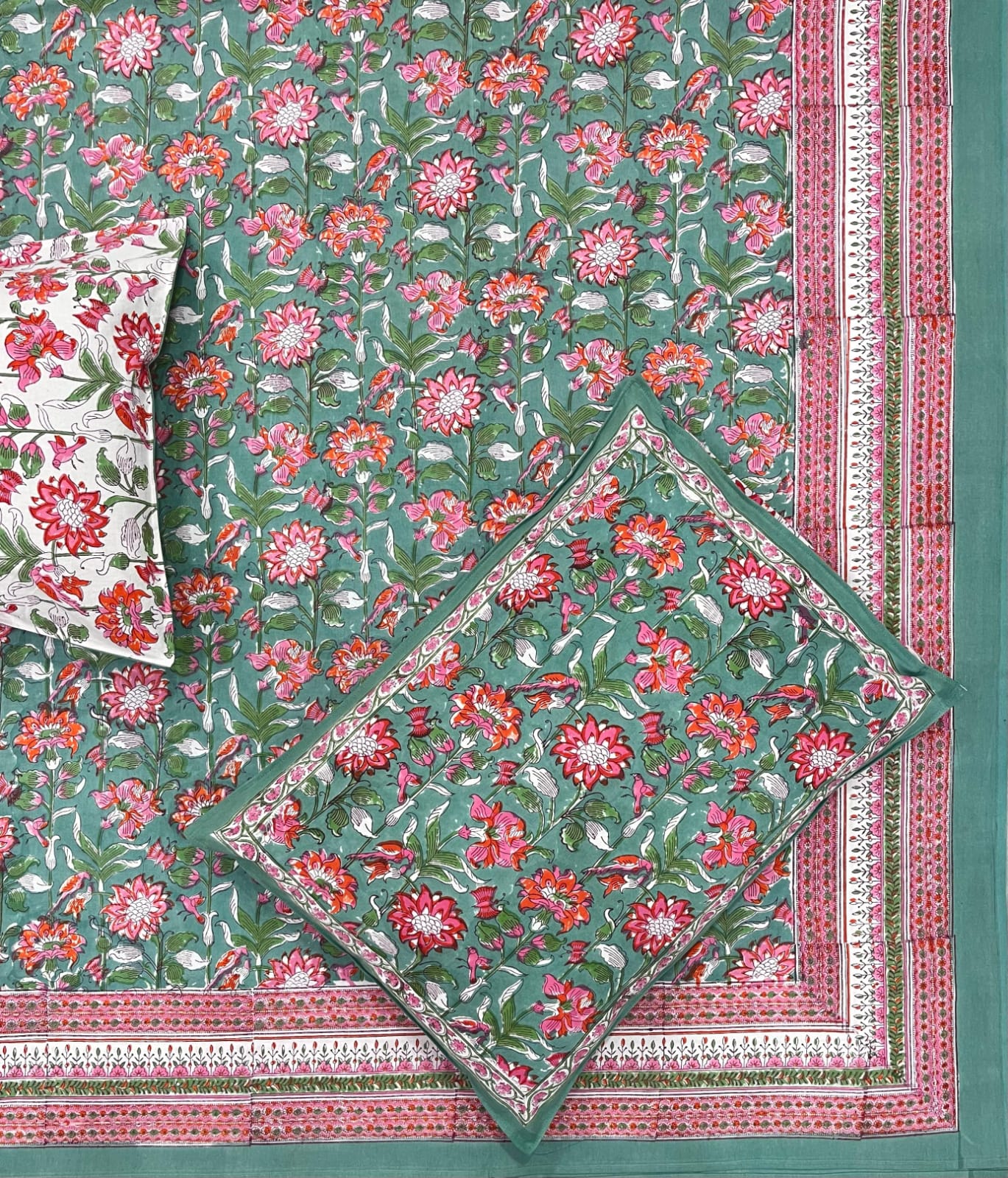 Fabfusion Hand Block Printed Jaipuri Bedsheet With Pillow Covers