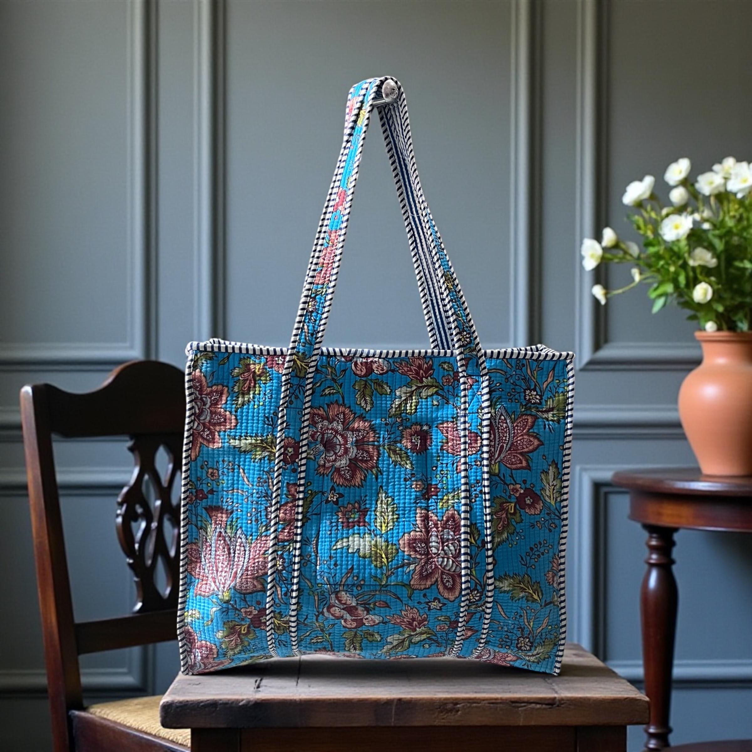 Home Tote Bag Jaipuri Handblock Printed Fabric Bag By Fabfusion